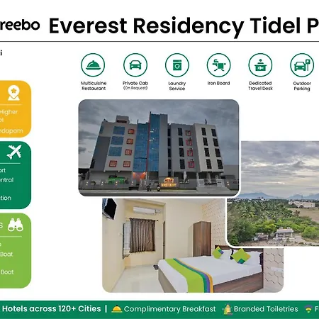 Collocato a circa 10 minuti in macchina da Siruvani Falls and Dam, l'hotel 3 stelle Treebo Everest Residency Tidel Park, 15 Mins From Coimbatore International Airport offre camere con l'aria condizionata a una distanza di 3 km da Siravanapuram Gowmara Madalayam. Gli ospiti che soggiornano presso questo hotel possono parcheggiare le loro auto nelle vicinanze.